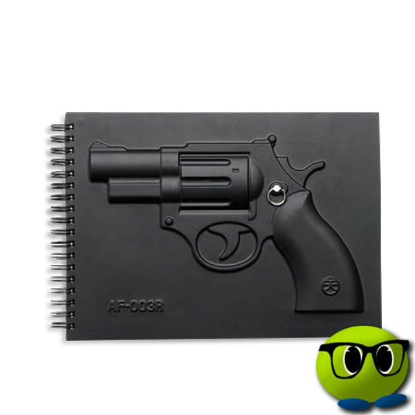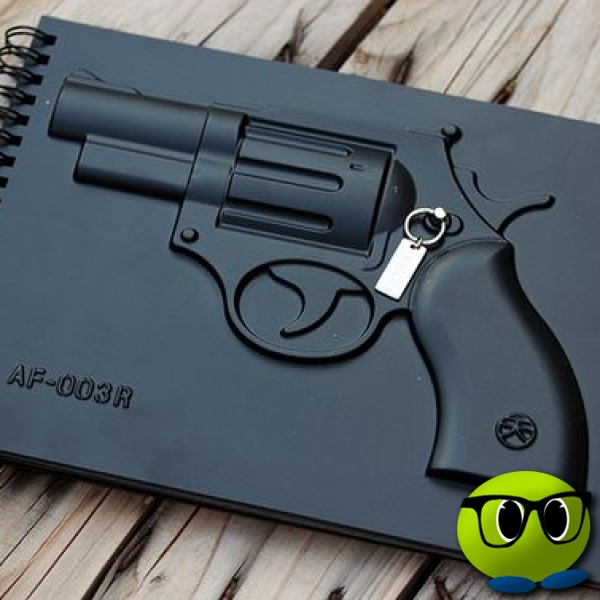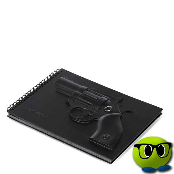 Ce carnet de note affiche un pistolet mis en relief sur sa couverture.