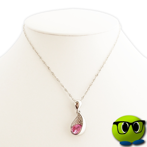 Dans ce cas, essayez ce magnifique collier fantaisie, couleur argentée et sertie d’une fausse pierre rose en forme de goutte d’eau.