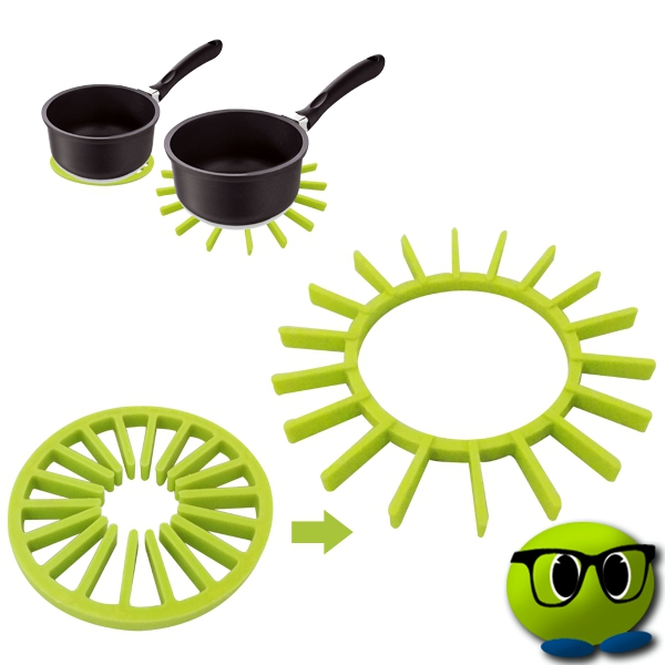 Ce dessous de table 2 en 1 forme sa petite taille en donnant l’apparence d’un cercle et dessine un soleil quand il est déployé.
