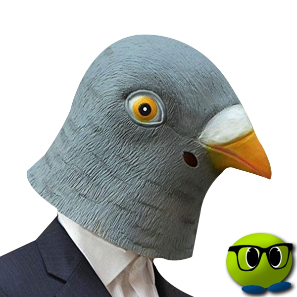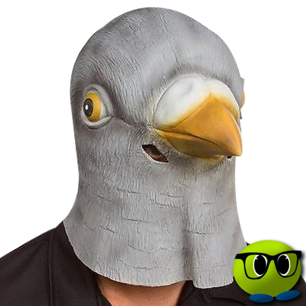 La conception du masque est très réaliste et il n’est disponible qu’en taille adulte. Il est conçu en latex et porte les couleurs classiques des pigeons c’est-à-dire une domination de la couleur grise, un peu de jaune et blanc au niveau des yeux et du bec.