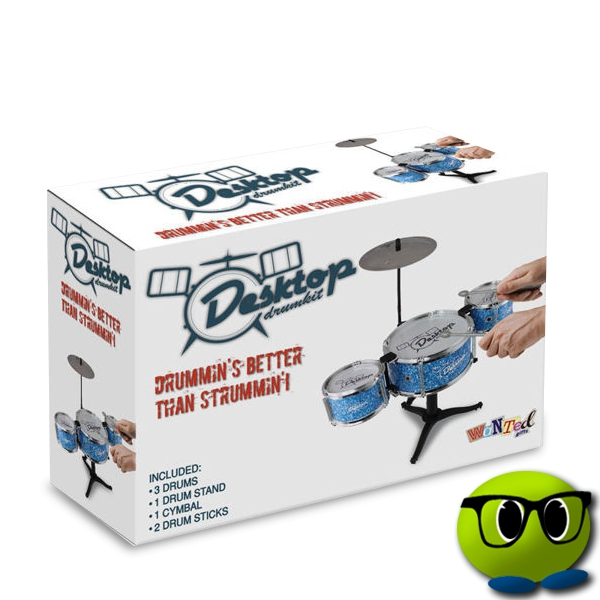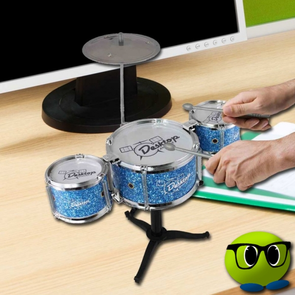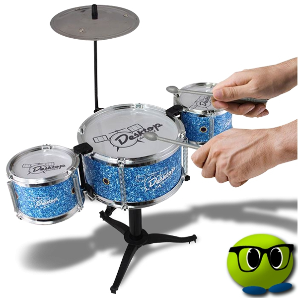 Il s’agit d’un mini-kit de batterie qui se compose de tous les éléments d’une véritable batterie et qui pourra être disposé sur votre bureau de manière à décorer votre espace.