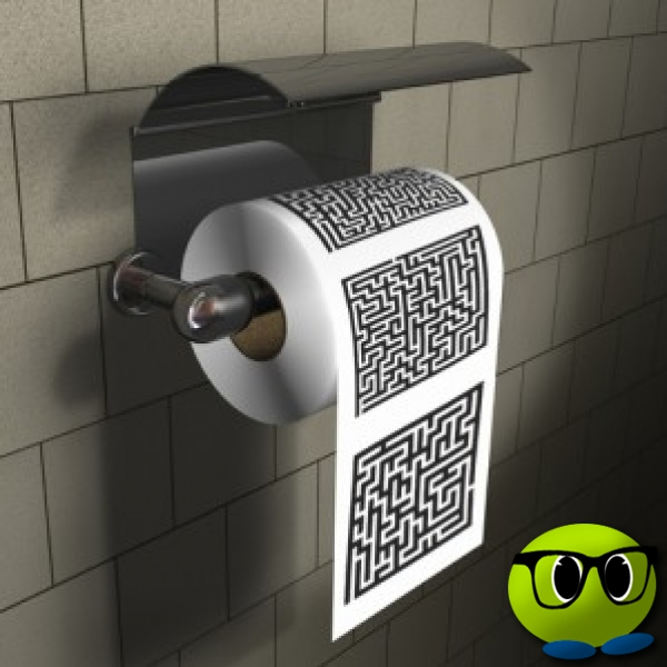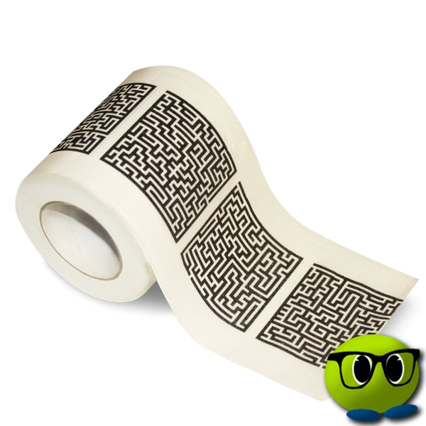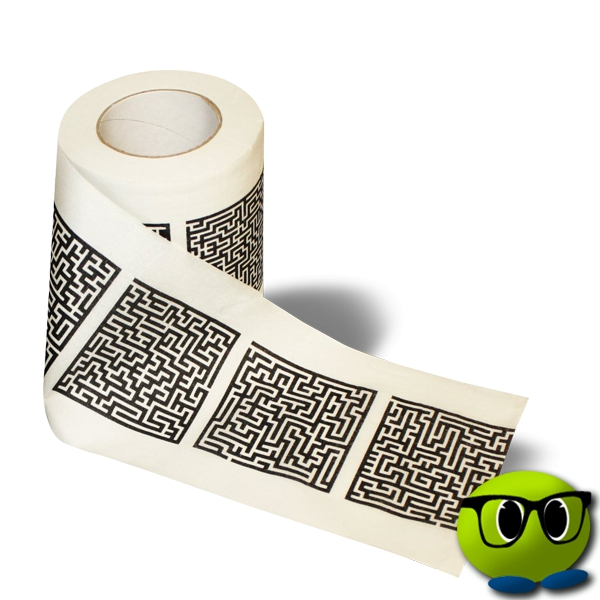 Plusieurs séries de labyrinthes sont inscrits sur ce papier toilettes de manière à vous permettre de vous amuser lorsque vous faites votre petite affaire.