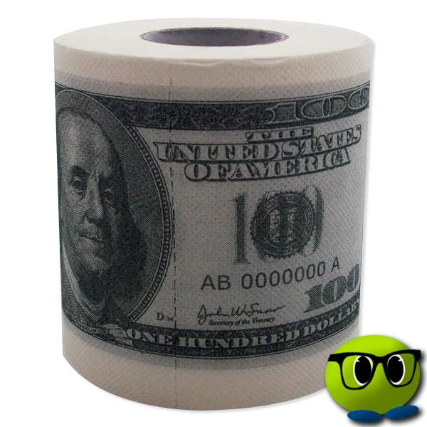 Tout à fait original, ce rouleau de PQ de 100$ vous fera passer un moment de fou rires garantis dans les toilettes. Après tout qui penserait que même les dollars peuvent servir de papier toilettes.