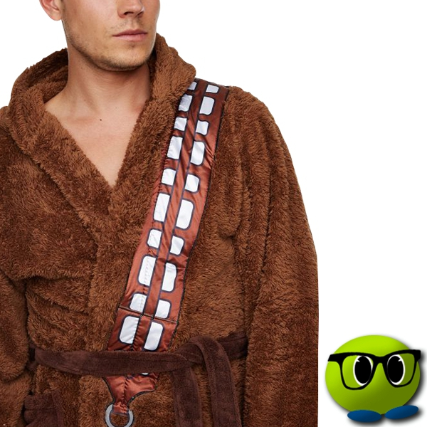 Ce peignoir représente un Chewbacca, le plus célèbre des Wookie. Il est de couleur marron. Il dispose d’une capuche, d’une poche et d’une ceinture brodée de l’avant jusqu’au dos du peignoir.