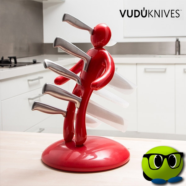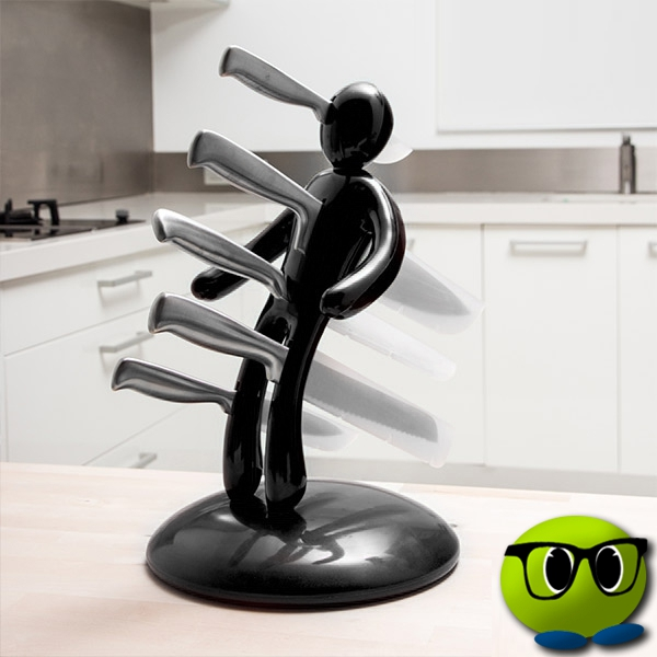 Cette petite figurine en rouge ou en noir est en effet un porte-couteau qui va décorer votre cuisine d’une façon insolite.