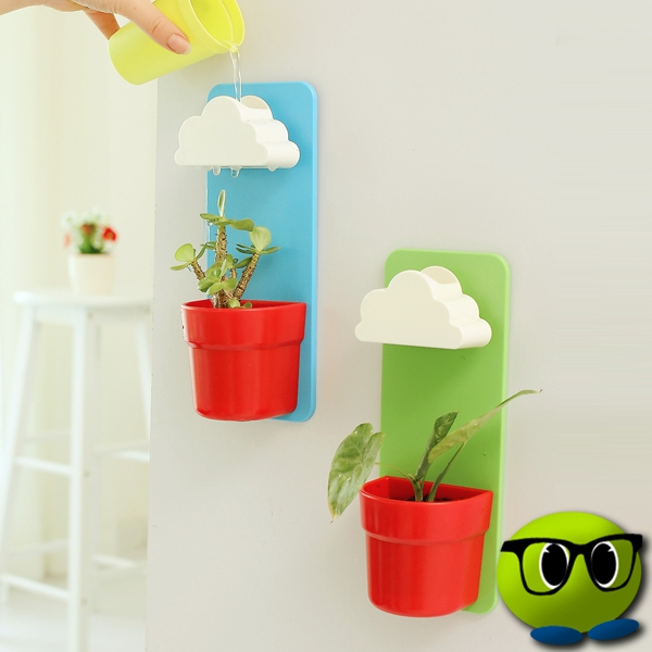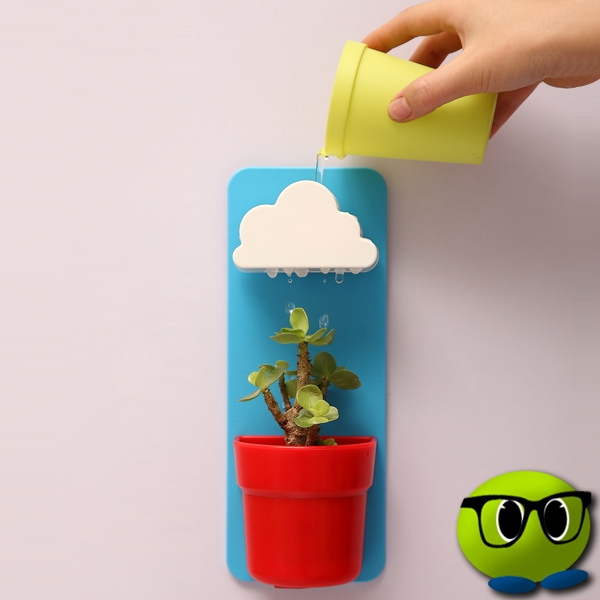 Il s’agit d’un pot de fleur mural. Pour arroser votre plante, il vous suffit de verser de l’eau dans l’ouverture située sur le petit nuage. Ce dernier a une contenance de 80 ml. Ce pot est fabriqué en PVC. Il est livré avec un support mural, un nuage, une grille de drainage et son bouchon.