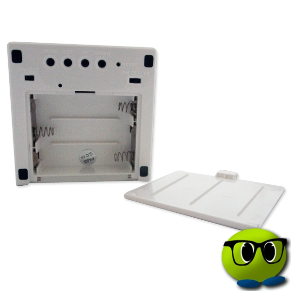 D’une dimension de 135 x 73 x 73 mm soit 13,5 cm de hauteur, ce réveil matin fonctionne grâce à 3 piles LR6.