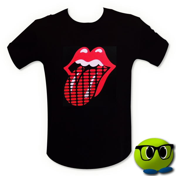 En effet, ce t-shirt à la Rolling Stones, scintille de mille feux en fonction des vibrations sonores.